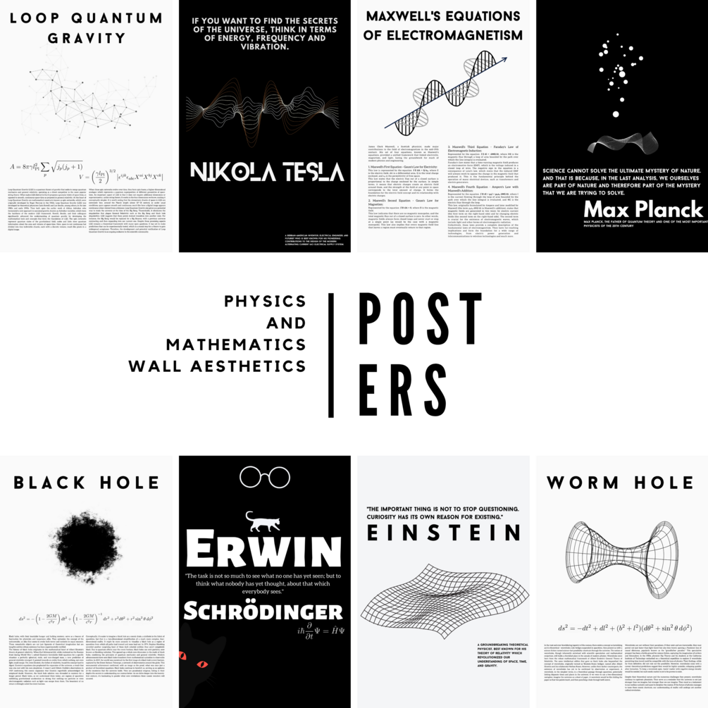 This collection features 10 beautifully designed posters, each focusing on a critical mathematical or physical concept. Rendered with stunning visuals and vivid colours, these posters bring abstract equations to life, making them ideal for classrooms, study rooms, or even your living room wall!